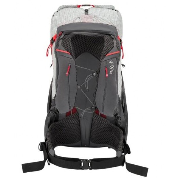 Rab Muon 40 採用Spectra® Ripstop材質,輕量耐用,非常適合高海拔健行,其TRI-FLEX™ 背負系統提供可靠的舒適感,即使長距離行走也能穩定的舒適支撐,可最大限度地減輕重量,是長途徒步旅行和徒步旅行的理想選擇。