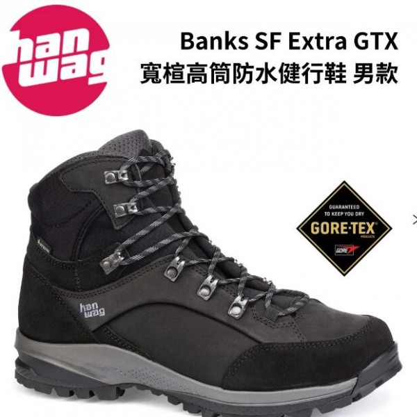 Banks是Hanwag最經典的的鞋款之一,鞋面以高品質的Nubuck頂級牛巴戈皮搭配麂皮製成,此版本採用最新研發的SF(Straight Fit) Extra寬趾楦頭,並且提升了鞋底的強度與支撐性,是一款從城市郊區到戶外,適合從事各種休閒活動和健行的鞋款。