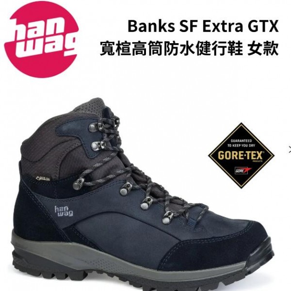 • Hanwag Banks SF Extra Lady GTX 女款 寬楦高筒防水健行鞋 海軍藍/瀝青灰