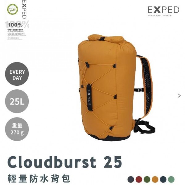 輕量防水單日背包,採用捲頂式封口,於2022年全新改款,並採用經bluesign®認證的再生尼龍材質。更新的功能是前側Z型彈性壓縮繩,可更快速、更簡便地收納頭盔或外套。輕量級的 Cloudburst取得了防水包和輕量背包之間的平衡,並有無與倫比的多功能性,無論是作為高山極限攀登的登頂包、輕裝冒險的單日包、水上活動的防水包,還是作為旅程中的備用包或購物袋,Cloudburst都能容納相當多的裝備。容量有15及25 公升可以選擇,能滿足戶外愛好者的多樣化需求,非常適合單日、天氣多變的冒險行程。