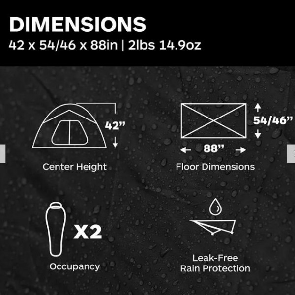 - 超大尺寸的D型雙門和雙前庭設計,可供放置背包、鞋子、登山杖等裝備,也能在下雨時於前庭進行炊煮
