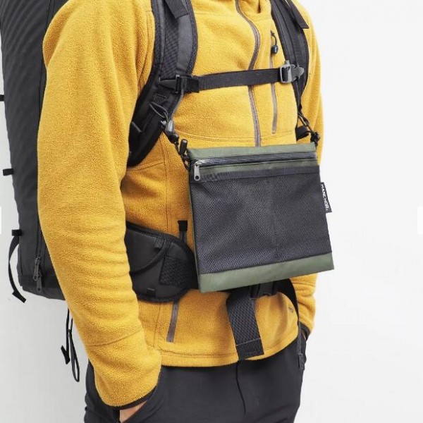 Surface輕量斜背包的網袋版本,能單獨側背使用,亦能配合各式背包做為胸前袋使用,新增第三點固定機制,提供行進間更穩定的表現,完美服貼再也不晃動。